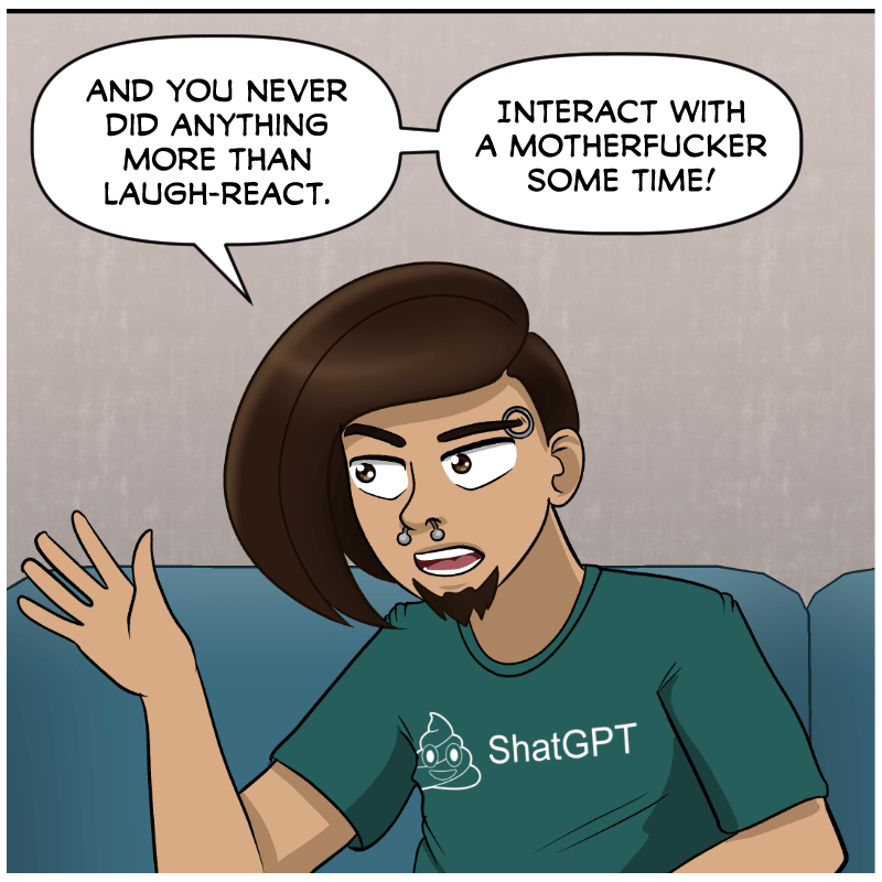 Steve: And you never did anything more than laugh-react. Interact with a motherfucker some time!