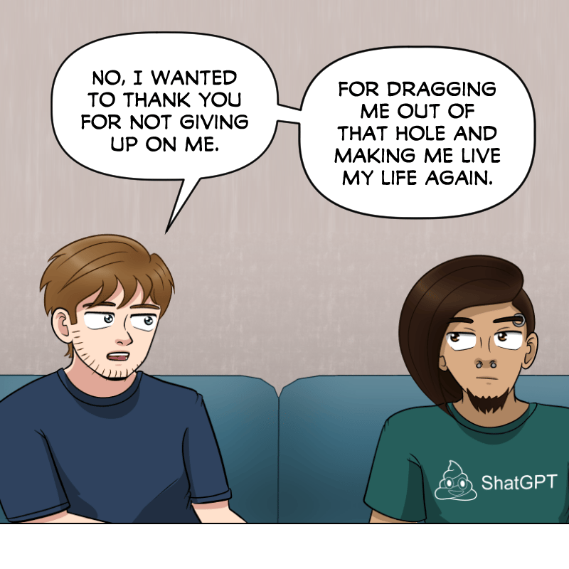 Nate: No, I wanted to thank you for not giving up on me. For dragging me out of that hole and making me live my life again.