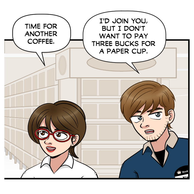 Nate: I'd join you but I don't want to pay three bucks for a paper cup.