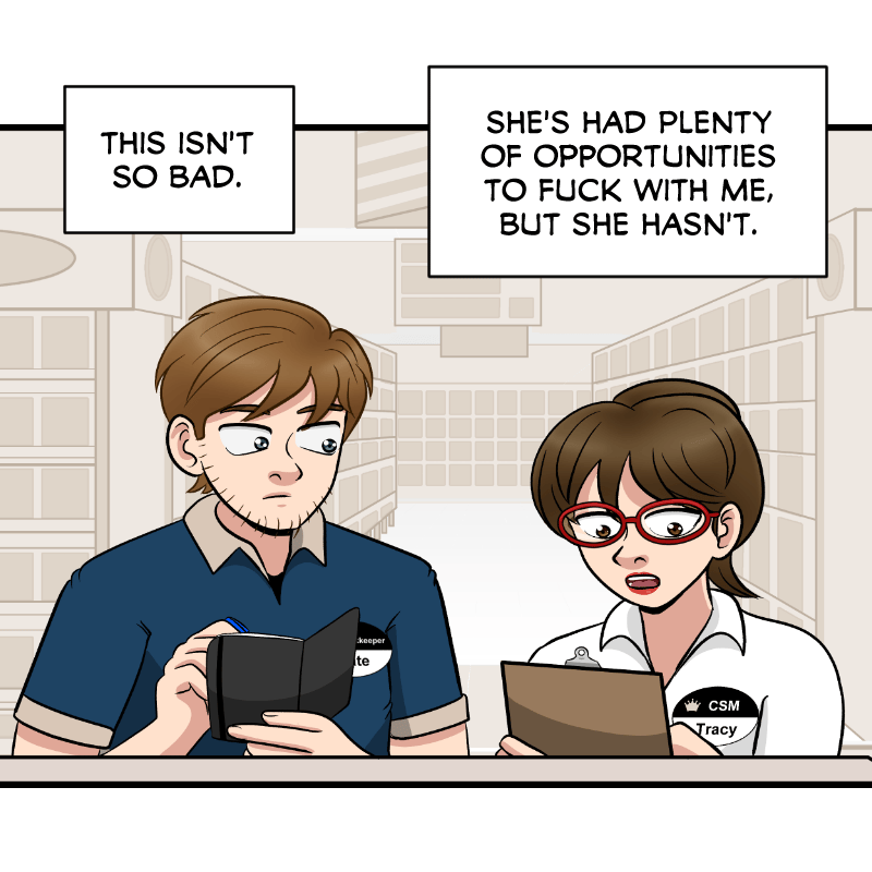 NARRATION: This isn't so bad. She's had plenty of opportunities to fuck with me, but she hasn't.