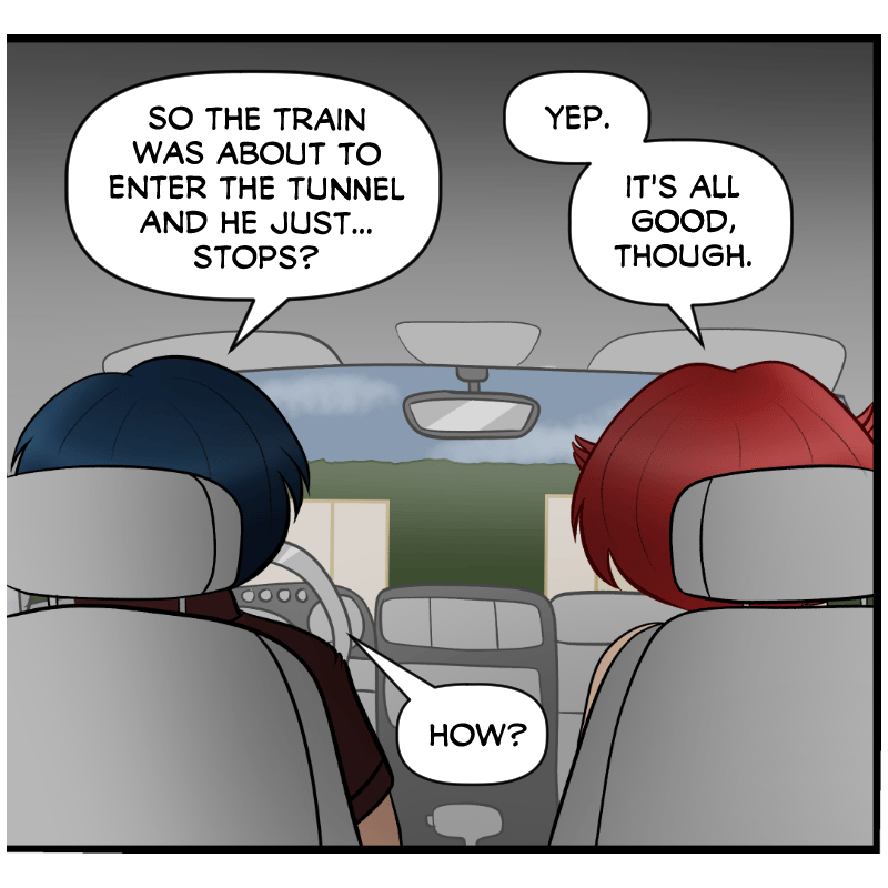 Aya: So the train was about to enter the tunnel and he just... stops?